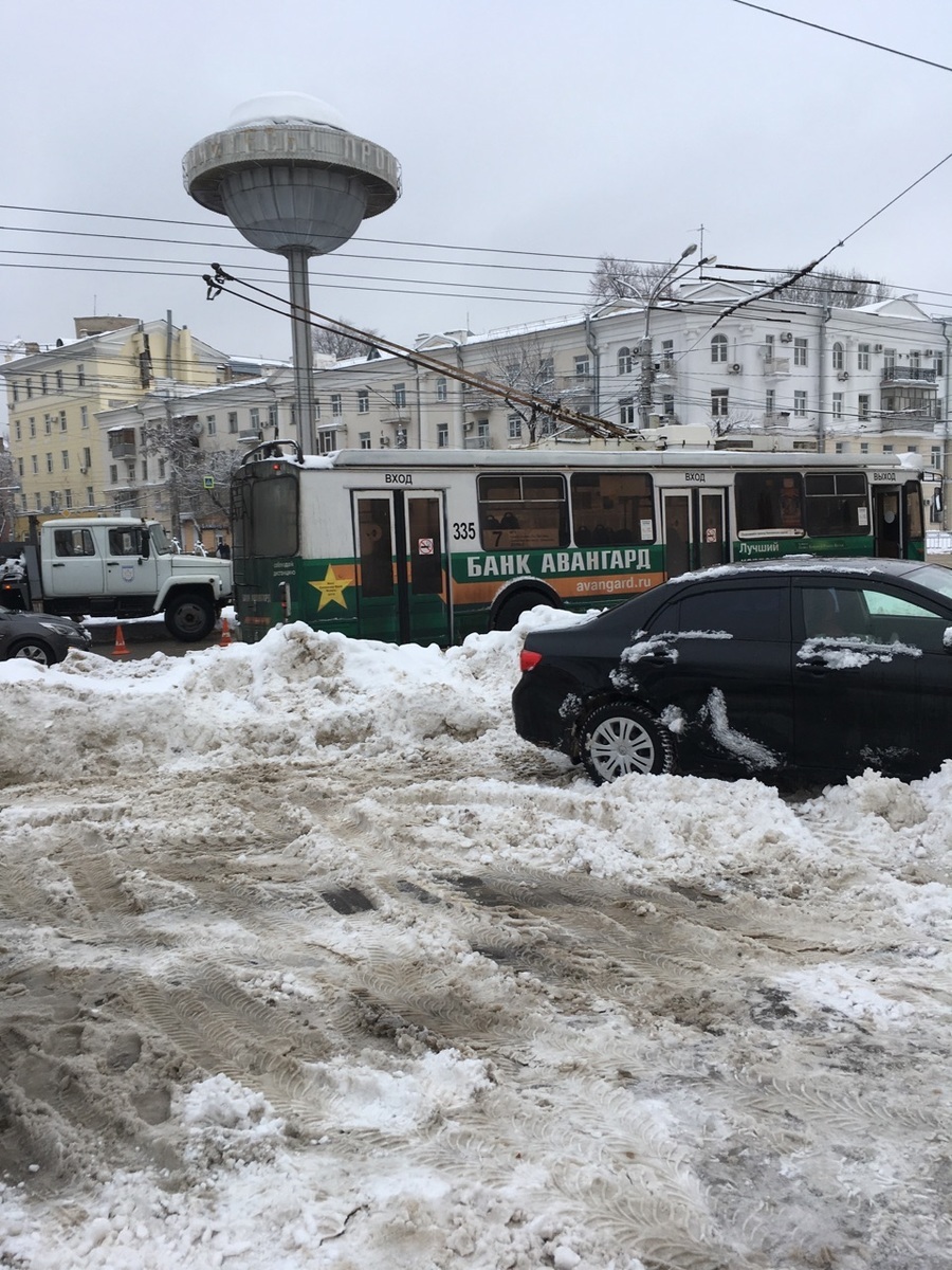 На присланном в редакцию «Блокнот Воронеж» фото видно, что платное пространство погрязло в снегу. Возможно, это стало следствием уборки проезжей части, так как на снимках видно, что сам асфальт на кольце Университетской площади полностью вычищен.
