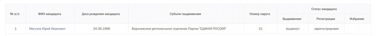 Есть мнение, что высокие шансы у главы Бутурлиновского района Юрия Матузова, который идет от партии «Единая Россия» по округу №21. Крепкий хозяйственник, особо не светившийся в скандалах, может значительно усилить влияние губернатора на областную думу.