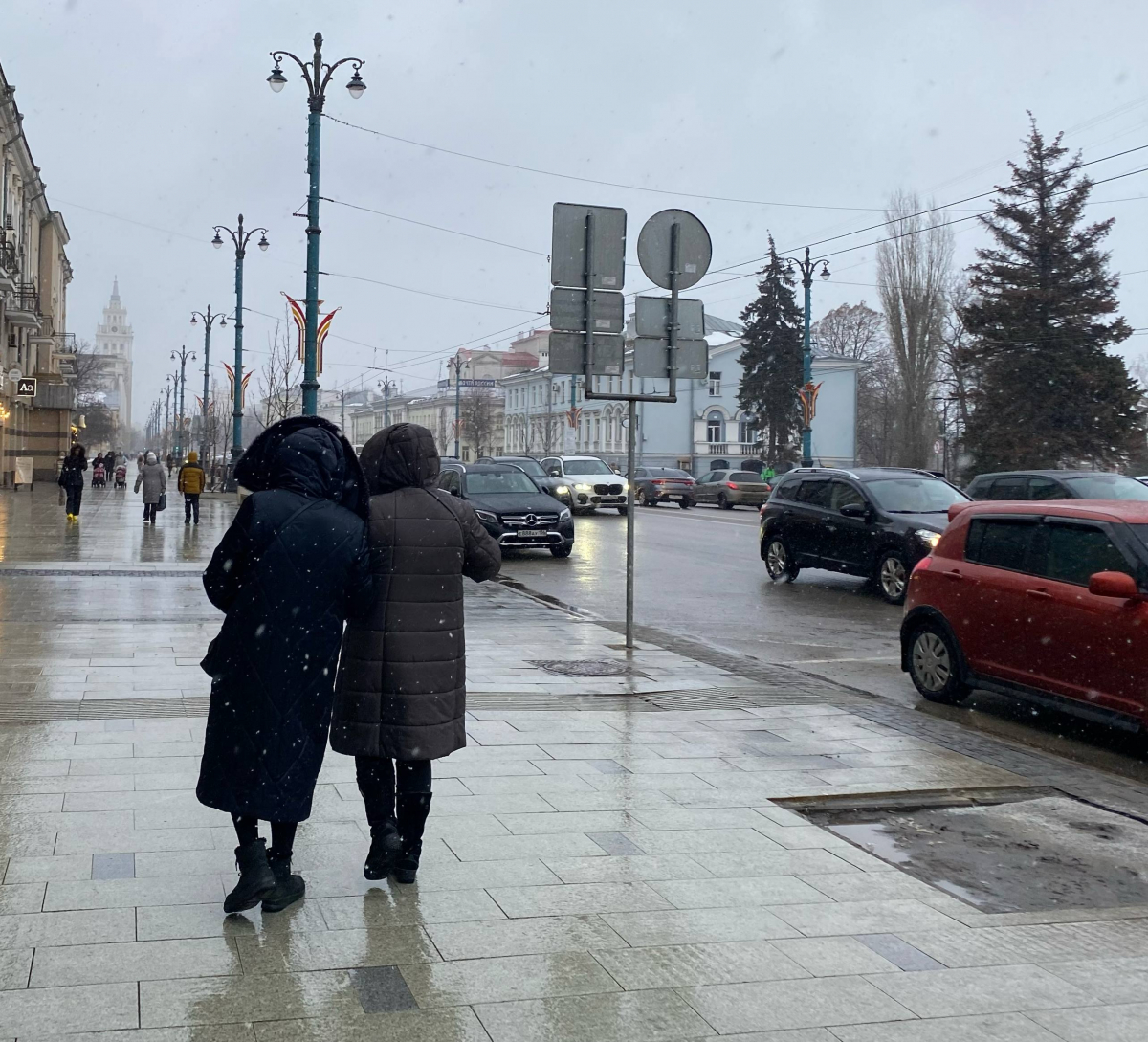 Где-то он ещё держится, где-то уже превратился в кашу, хлюпающую под ногами. Тёмно-серый, почти чёрный у обочин, коричневый возле тротуаров. Город устал от зимы, и снег устал вместе с ним. Он лежит, будто ждёт команды: либо растаять, либо снова выпасть – уже неважно. Воронеж под ногами – мокрый, грязный, но честный. Он не притворяется, что весна уже наступила. Он просто ждёт.