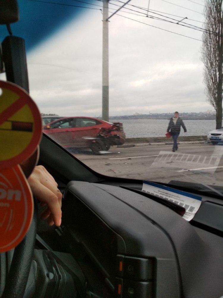 Столкнувшиеся автомобили почти перекрыли движение в сторону Левого берега.