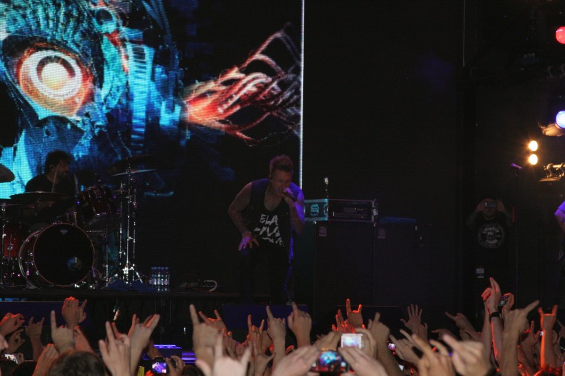 И вот долгожданное выступление - на сцене калифорнийская группа Papa Roach. В зале собрались все, кто пришел на концерт, вверх поднялись руки, на глазах некоторых девушек выступили слезы.