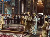 Под колокольный звон и пение молитв ковчег внесли в главный храм города, после чего состоялась Божественная литургия. Это событие собрало у стен храма десятки верующих, духовенство трех епархий и первых лиц региона во главе с губернатором Александром Гусевым.