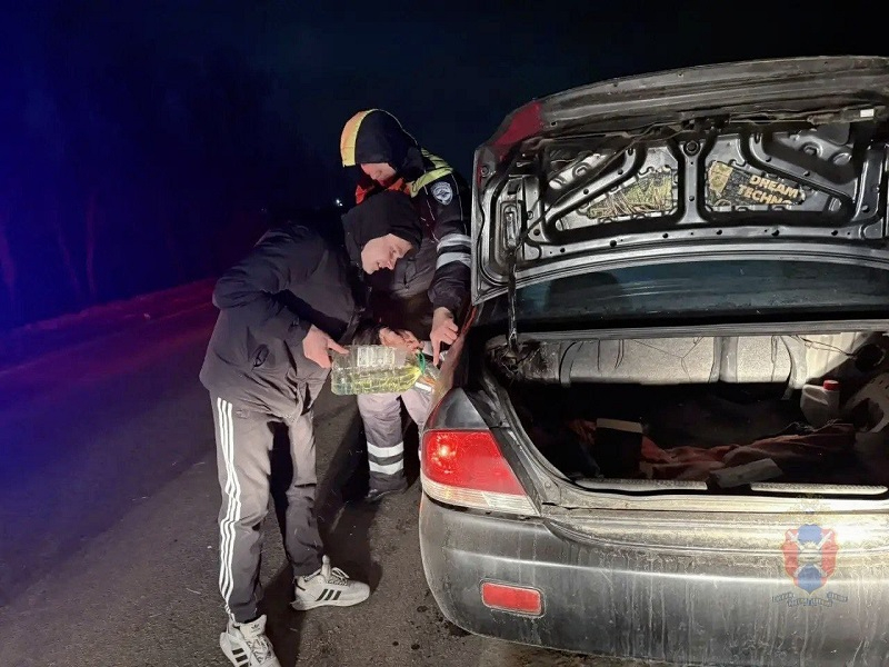 Молодой человек рассчитывал дотянуть до ближайшей заправки, но просчитался. Горючее кончилось. Полицейские довезли водителя до АЗС на своем служебном автомобиле. Там он купил канистру топлива, затем его вернули к авто, и он продолжил путь.