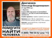 Всех, кто что-либо знает об Александре Донченко, просят звонить по телефонам, указанным в ориентировке.