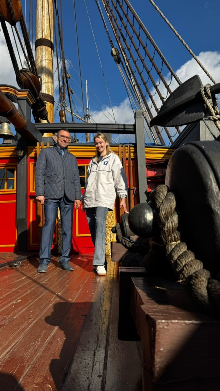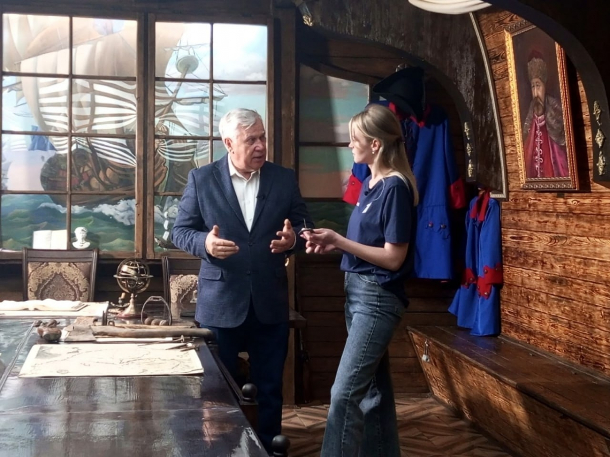 Съемочная группа посетила ключевые исторические точки города, связанные с именем Петра I: Адмиралтейскую площадь, Петровский сквер, памятник великому реформатору, музей-корабль «Гото Предестинация» и музейный комплекс «Петровские корабли».