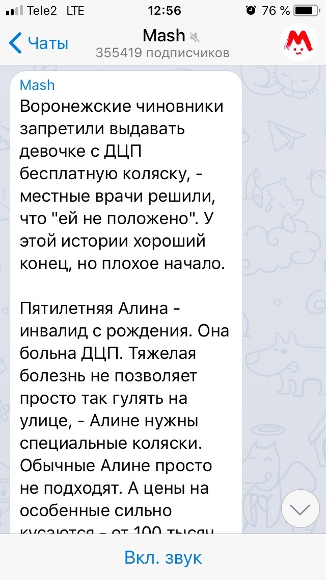 Алине по закону полагалась бесплатная коляска, которая меняется раз в 4 года. Как сообщает крупнейший российский telegram-канал Mash, сначала все было хорошо, и воронежские власти выдали девочке положенное средство передвижения.