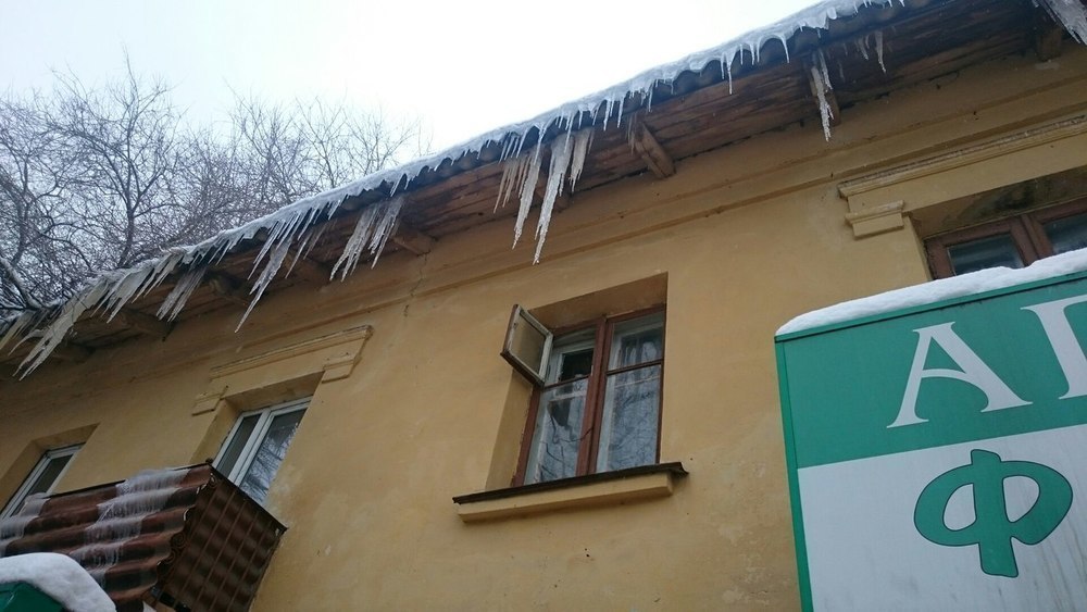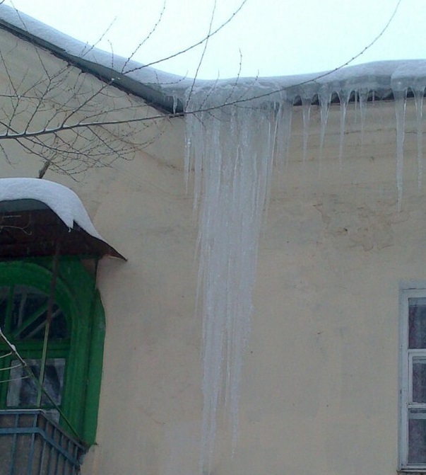 Горожане размещают в соцсетях фотографии смертельно опасных сосулек.