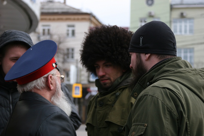 Присутствующие на митинге представители казачества, движения Народный Собор, Национально-освободительного движения Воронежа, партии «Великое Отечество» поддержали активистку и всех русских, находящихся сейчас в Луганске.